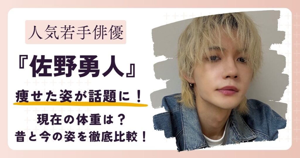 佐野勇斗が「痩せた?」と話題に。SNSでは「細くなった」「顔つきが変わった」と注目を集めています。画像で昔と今の姿を徹底比較し、どれくらい変わったのかを詳しく解説。気になる現在の体重やファンの声もご紹介します! -